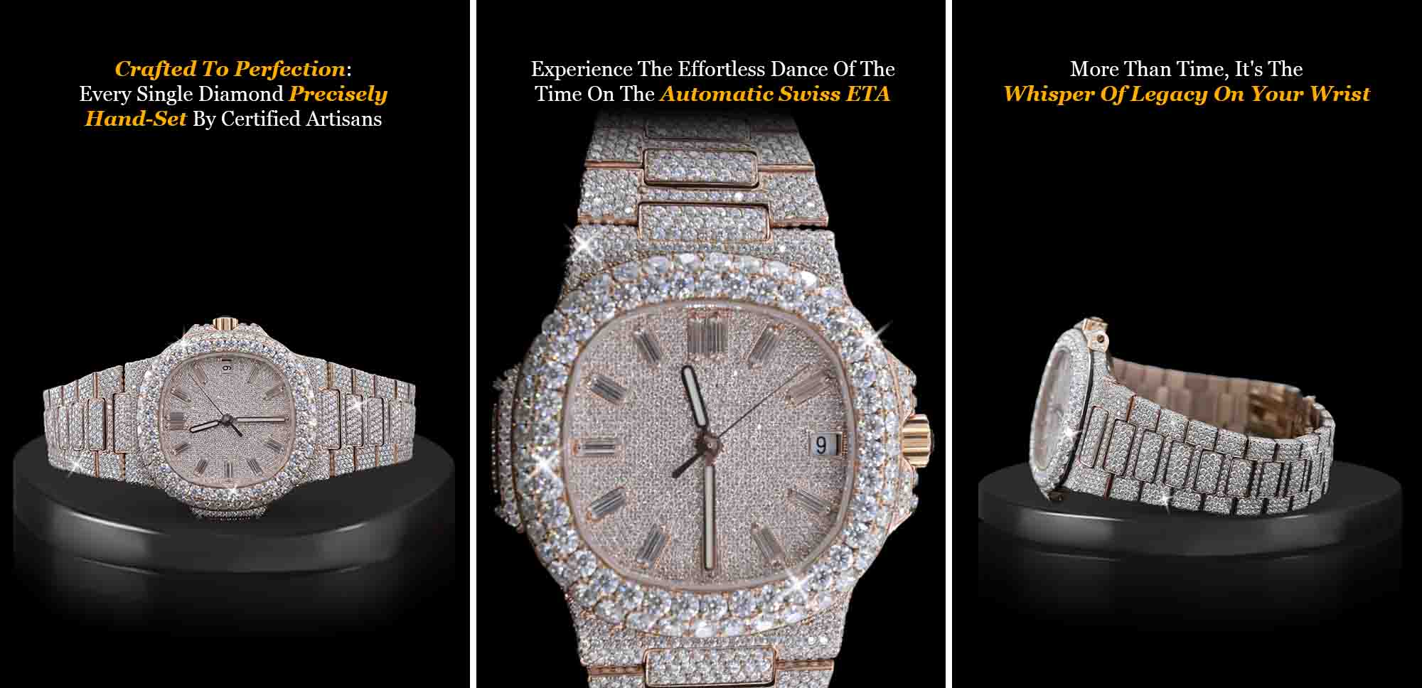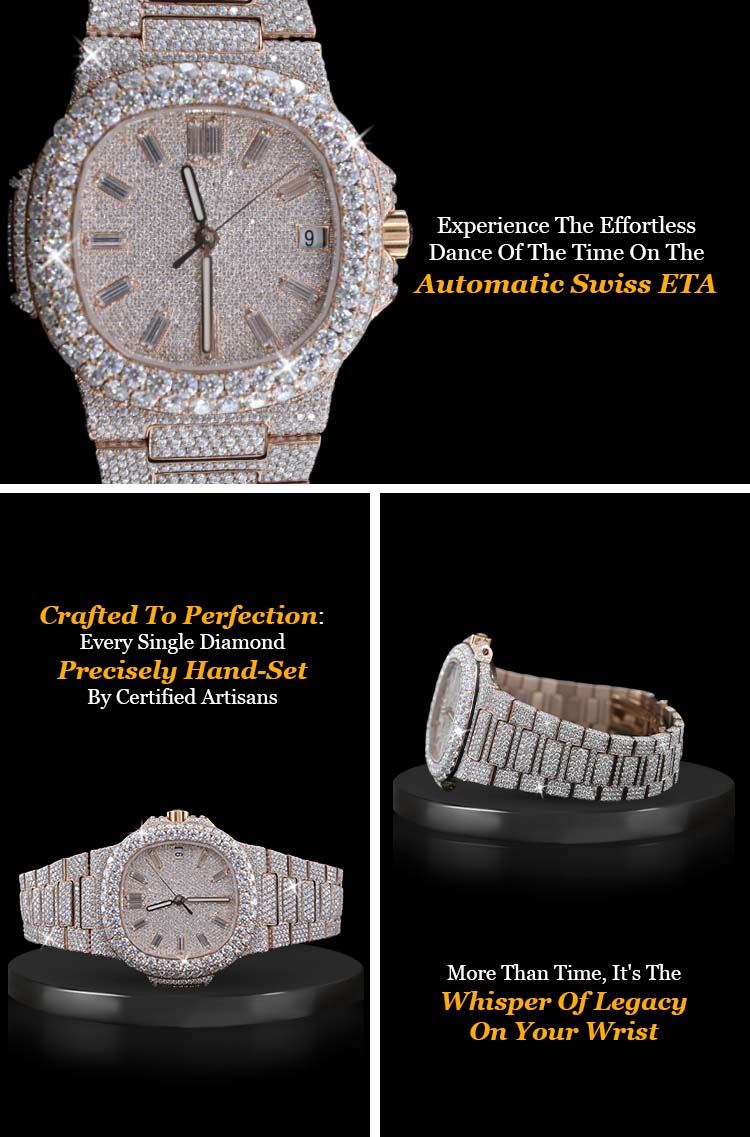 Blinged-out Watch is More Than Just a Time-Telling Device; It’s a Reflection of Your Unique Personality and a Symbol of Your Discerning Taste. Whether It's for a Night Out or To Level Up Your Wrist Game, This Iced Out Masterpiece is Built to Stun While Offering Everyday Versatility.