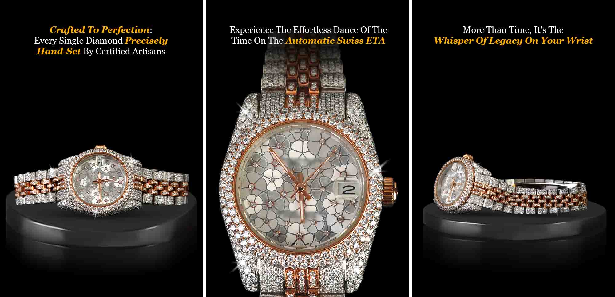 Branded Luxury Iced Out Watch is Known for Its Elegance and Aesthetic Appeal. A Timepiece That Combine The Beauty of Diamonds with The Precision of Watchmaking. Bust Down Watch is a Perfect Example of High-End Customization, Combining Classic Elegance with a Modern, Iced Out Streetwear Twist.