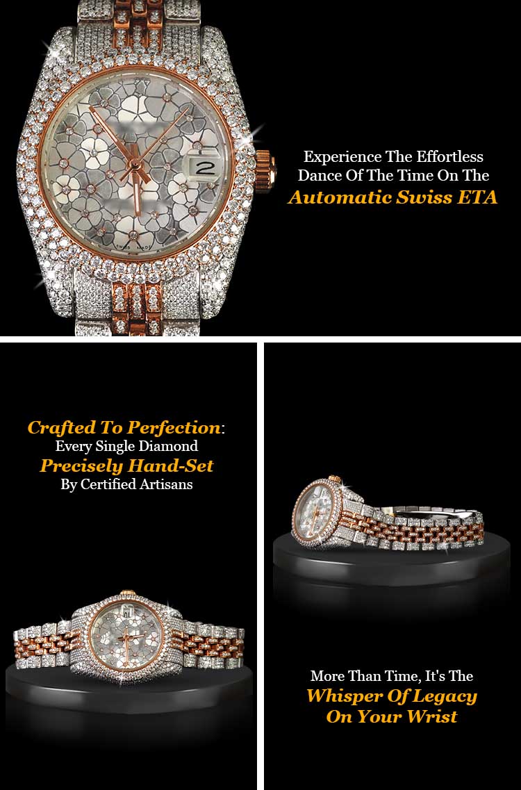 Learn moreSpring Time Iced Out Watch for Women 32mm Floral Dial VVS1 Moissanite