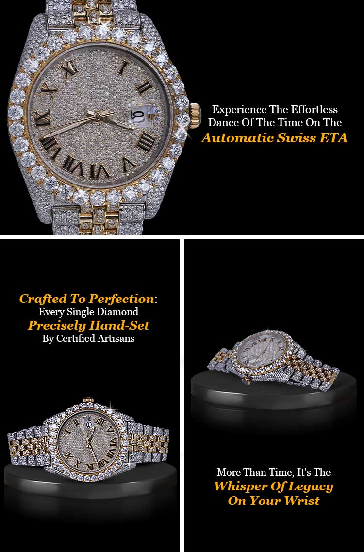 Learn moreVVS1 Moissanite Diamonds Two Tone Iced Out Watch Bust Down Jewelry