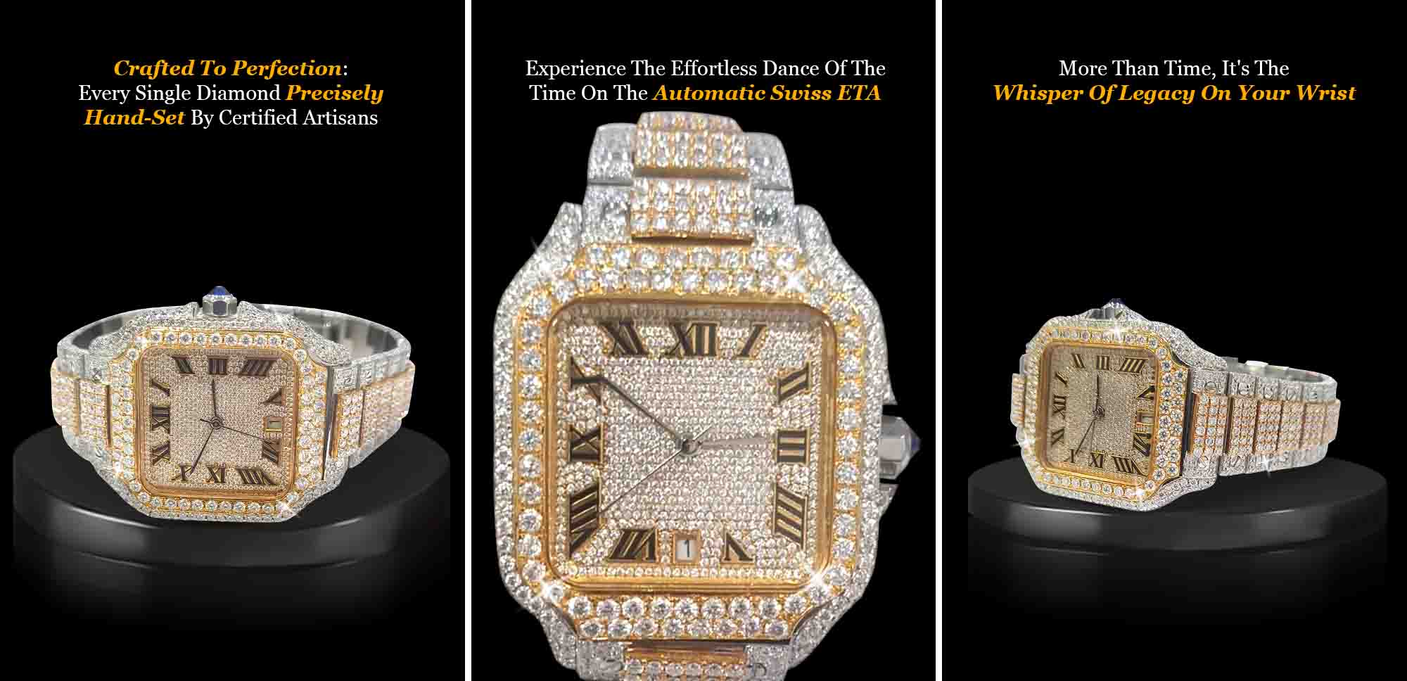 An Iced Out Watch Refers to a Timepiece That Combine The Beauty of Diamonds with The Precision of Watchmaking. Whether Worn as a Centerpiece or To Elevate Your Everyday Look, This Bust Down Watch Combines Timeless Craftsmanship with High-End Custom Detailing.