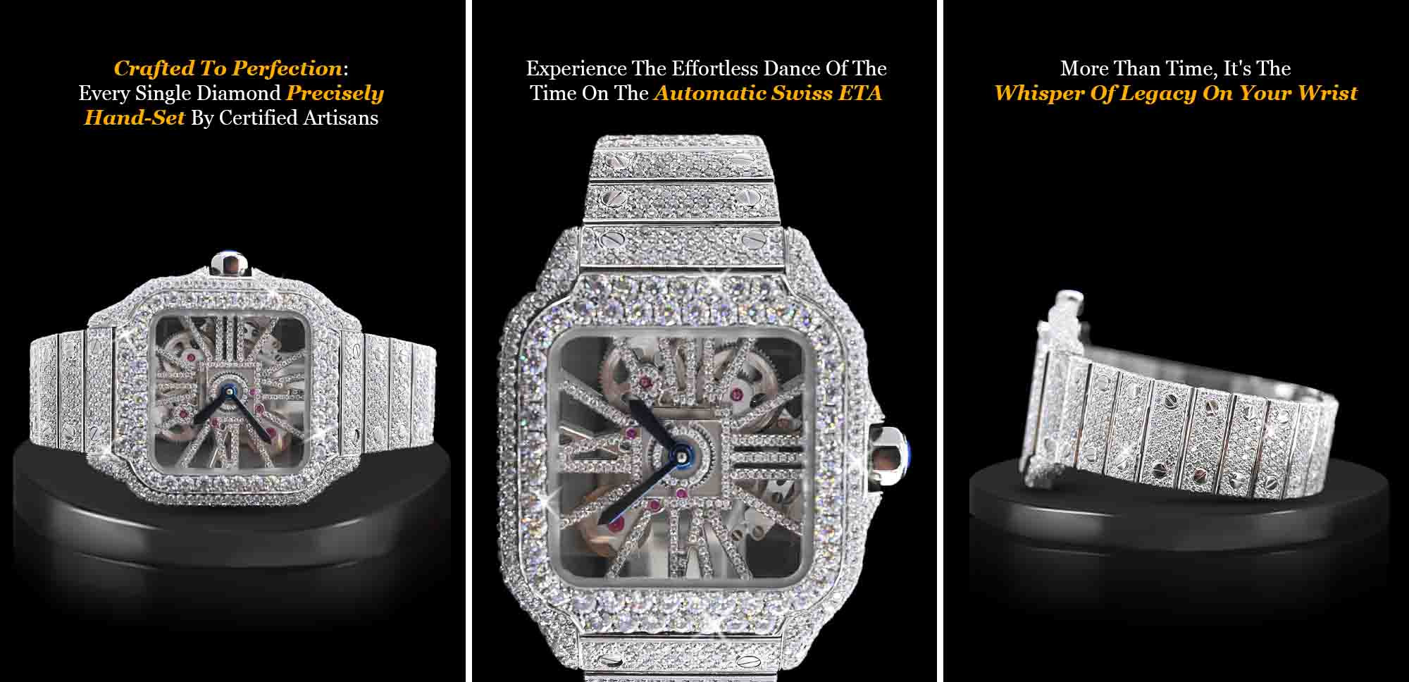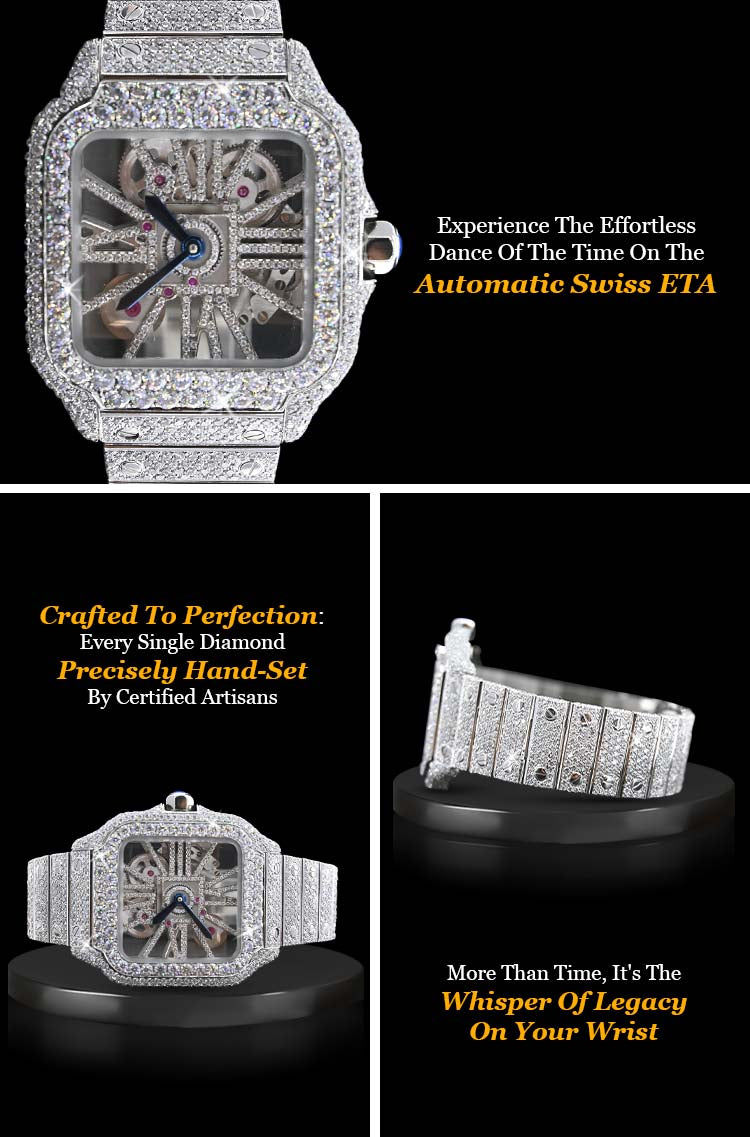 This Iced Out Wristwatch is Known for Its Elegance and Aesthetic Appeal, It Can Elevate Your Wrist with Sheer Opulence. Bust Down Watch is a Perfect Example of High-End Customization, Combining Classic Elegance with a Modern, Iced Out Streetwear Twist.